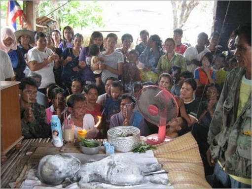 As all good mysteries it happens in far away from the technology wonders of the modern society in Thailand. You can see a lot of local folks in the background of these photos that seem to worship this creature they have “found”. The end result is an even more absurd and even humorous scene. They managed to get me even more amazed by this baby powder and juices they brought as a tribute to this creature. They have even brought a fan to keep it well preserved for the scientists.